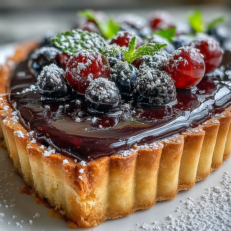 Pin It There was this moment when I pulled the assembled tart from the fridge and the afternoon light caught all those glossy berries arranged on the deep purple curd, and I realized this wasn't just dessert anymore—it was something I'd made with my hands that looked like it belonged in a window display. That feeling of making something beautiful and then watching people taste it never gets old.