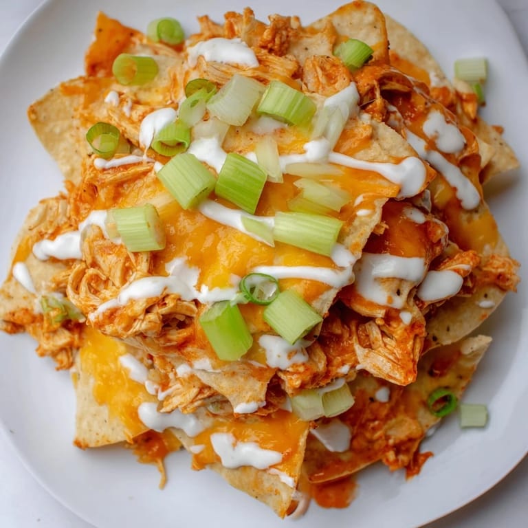 Pin It My brother showed up one Sunday with a craving and zero patience. We had leftover rotisserie chicken, a bag of chips, and fifteen minutes before kickoff. What started as a hasty pile of whatever was in the fridge turned into the most requested dish at every gathering since. Now I make these buffalo chicken nachos on purpose, and they disappear faster than I can warn people theyre hot.