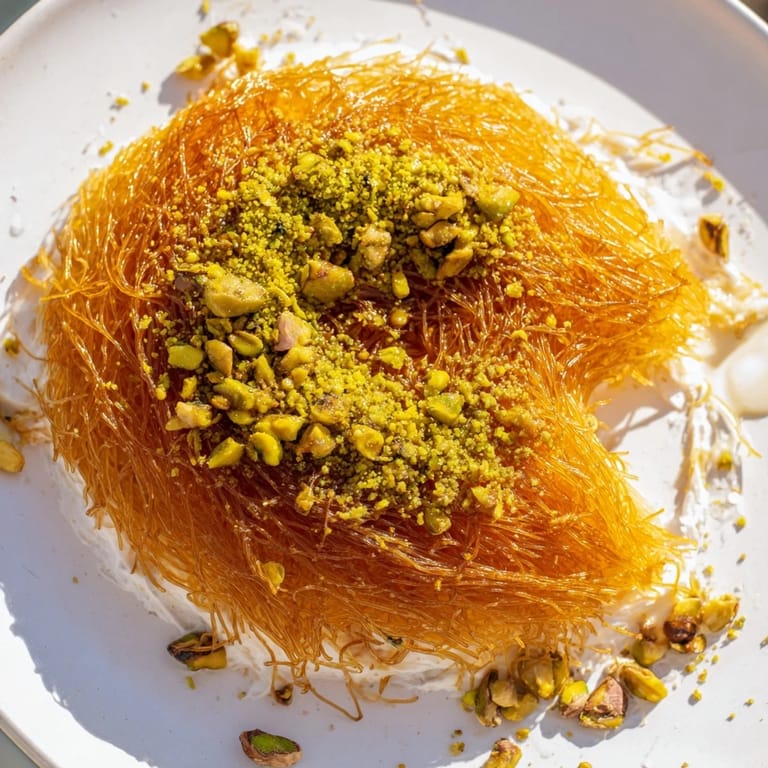 Pin It The first time I watched someone pull knafeh from the oven, I was transfixed by how it transformed—golden strands crisping up while the cheese inside stayed warm and yielding. There's something almost magical about how the butter-soaked phyllo catches the heat, turning into this thin, delicate network that shatters on your tongue. My friend's grandmother made it look effortless, though she later admitted the trick was in patience and listening to the sizzle. Now whenever I make it, that sound takes me right back to her kitchen, steam rising and the smell of orange blossom filling every corner.