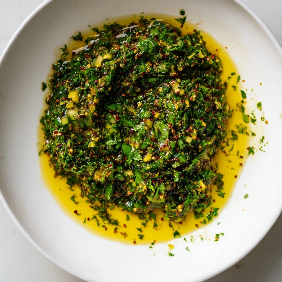 - Mince your garlic and shallot together on the cutting board so their juices start mingling, then add them to the bowl with the herbs. This is where the marinade begins to smell like something real.