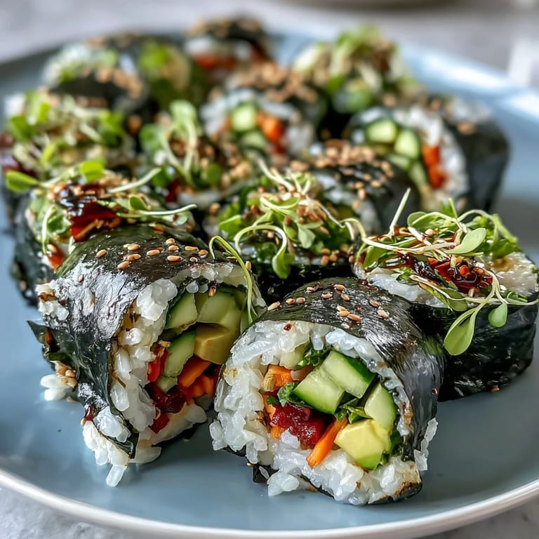 Pin It Experience the joy of making your own Nori Rolls with Vegetables, a fresh and vibrant dish that brings a touch of Japanese inspiration to your kitchen. These DIY seaweed rolls are filled with the perfect combination of crisp cucumber, creamy avocado, and crunchy sprouts, making them an ideal choice for a healthy snack or a light, refreshing meal.