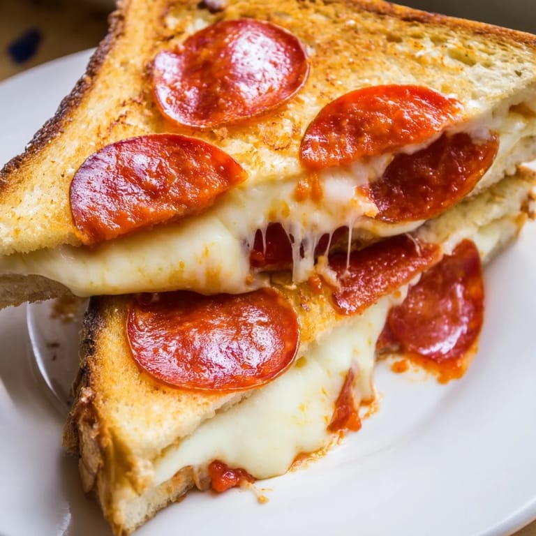 Pin It There's something almost rebellious about combining two things that have no business working together—except they absolutely do. I was standing in my kitchen on a rainy Tuesday, staring at leftover pepperoni and a wedge of fresh mozzarella, when it hit me: what if I treated pizza like a grilled cheese? Twenty minutes later, I was biting into something that felt like both comfort foods had decided to become best friends. The crispy edges, the way the cheese pooled at the corners, the marinara that peeked out between the bread—it was messy and perfect.